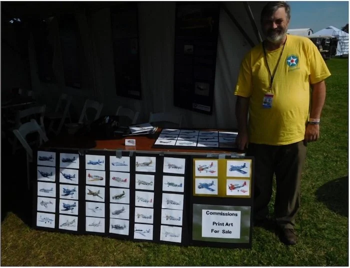 I continued to draw airplanes, refine my details, and learn more about shape and proportion. At the call center, some of the programs I'd worked on, the call volume wasn't very high. So I would occasionally sell an occasional cat or dog or baby picture or something to my co-workers; very seldom an airplane, but I always had a passion for airplanes, and I have continued to draw them for pretty much all of my life, and that brings us to – today, here at EAA’s AirVenture and the warbird area.