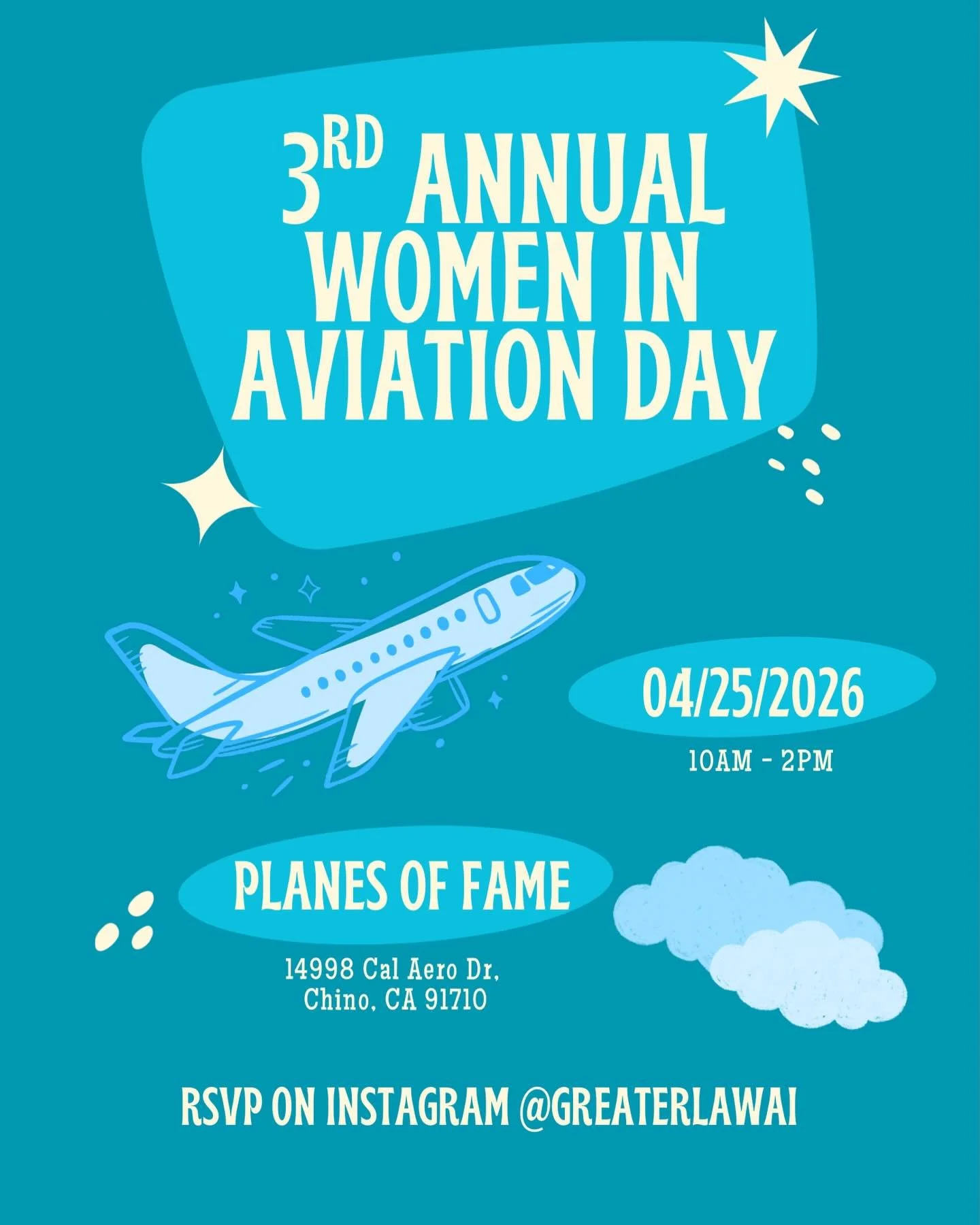 📅 Date: April 25, 2026 ⏰ Time: 10:00 AM – 2:00 PM 📍 Location: Planes of Fame Air Museum, 14998 Cal Aero Dr., Chino, CA 91710 📣 RSVP: Instagram @GREATERLAWAI